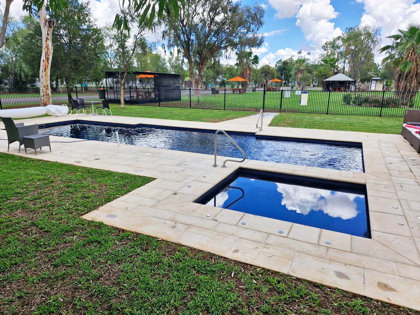 Surrounded by lush gardens and offering spotless amenities, inviting cabins, and welcoming outdoor spaces, the park provides a refreshing oasis amid the rugged beauty of the Australian outback.